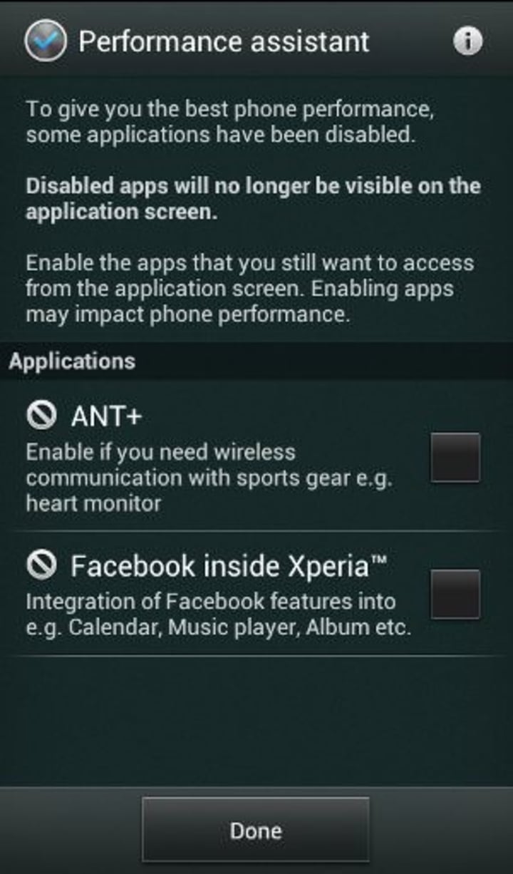 ‘Performance assistant’ was introduced in Android ICS to help you disable apps that you don’t need. Disabling apps is different from uninstalling apps – uninstallation remove application files from the phone but no file is removed/deleted when you disable it. These disabled apps are not shown on the home screen or app tray but you can re-enable them for use whenever you need them.