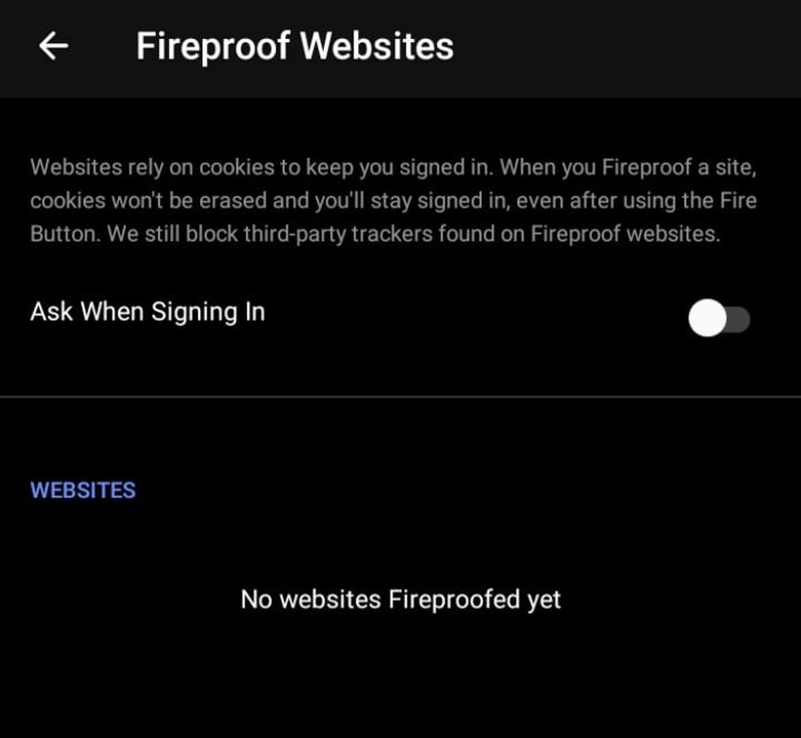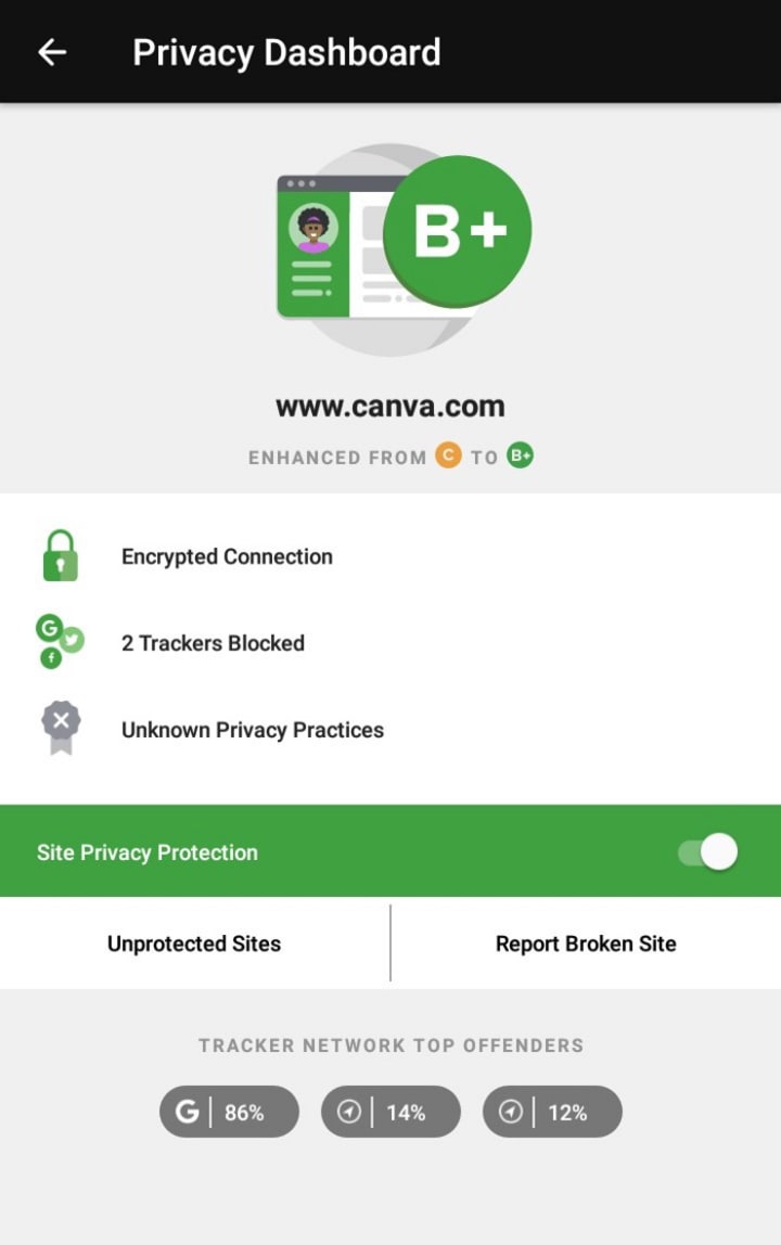 The browser also has a privacy dashboard where it shows whether or not trackers were found and blocked as you can see.
