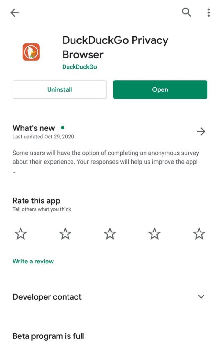 Right at the bottom you can see that Google is leading, with 86%. To download the app open up Google Play store, and search for DuckDuckgo, and download.