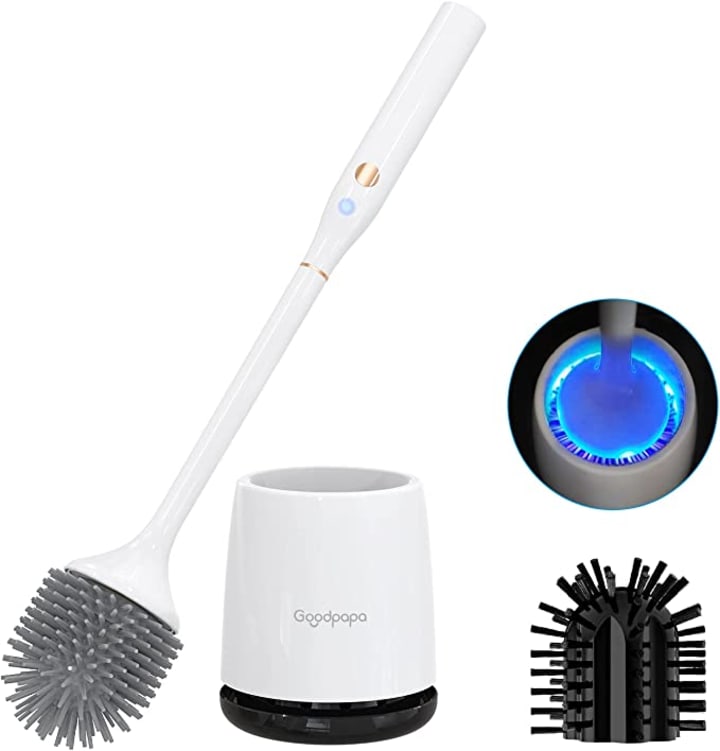 The Toilet Scrubber is an electric toilet brush designed to provide efficient cleaning quickly and effectively. The brush head spins at high speed, up to 300 laps per minute, providing a powerful scrubbing action that removes even the toughest stains, making it ideal for busy households or large families that want to save time and effort in cleaning the toilet. The toilet scrubber comes with a powerful battery capacity and a detachable handle that you can place in a more convenient location for charging, making it more hygienic. The Toilet brush set includes two replaceable brush heads - one silicone brush head and one hard bristle brush head - allowing you to choose the appropriate brush for your cleaning needs. The toilet scrubber brush is designed to be wall-mountable, and it comes with a holder that you can attach to any smooth surface. This allows you to keep the brush within easy reach, and the vented holes at the bottom of the holder allow for quick drying and prevent any odors from accumulating. The toilet brush is incredibly easy to use and doesn't require any installation or complicated setup. Simply insert the brush head of your choice, press the button to turn it on, and you're ready to start cleaning. Upgrade your toilet cleaning routine with the Toilet Scrubber from GOODPAPA today.