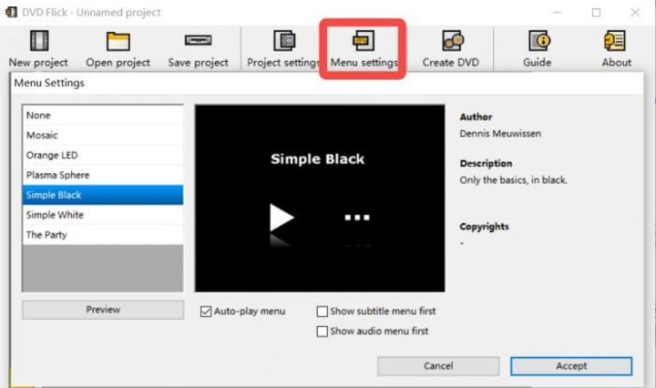Step 2. Set disc and menu options (and do light edits)