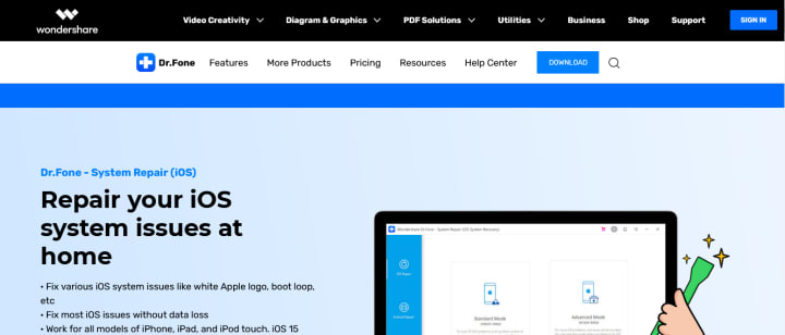The best part is that you don’t have to back up your data while using this software; Dr. Fone will do everything for you. Dr. Fone solves white screen of death problem problems and can also fix iOS system issues. The software helps protect your contacts, music, videos, messages, and more during the iOS system repair process. In addition, Dr. Fone works for all iOS systems from iPhone to iPad to iPod touch.