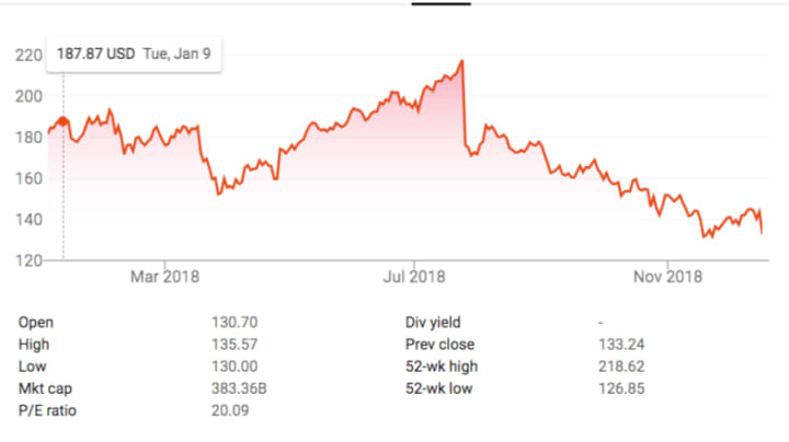 What will be interesting to watch—from a strategic perspective—is how Facebook responds to what is basically a challenge unparalleled in business history to its very existence—and make no mistake, this is an existential crisis for the company. Now Facebook's stock has indeed fallen—but not abysmally considering the slew of negative hits that just seem to keep on coming, one after another, for the company. With negative market sentiment overall hitting Wall Street at the tail end of 2018, one might even argue that Facebook has held fairly steady—considering the headwinds facing not just the company, but tech stocks in general.