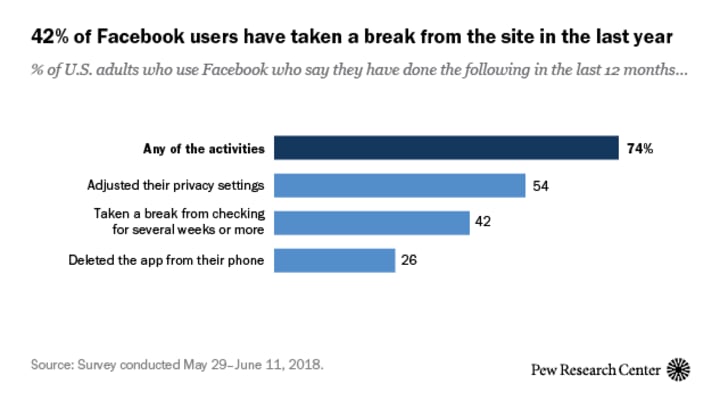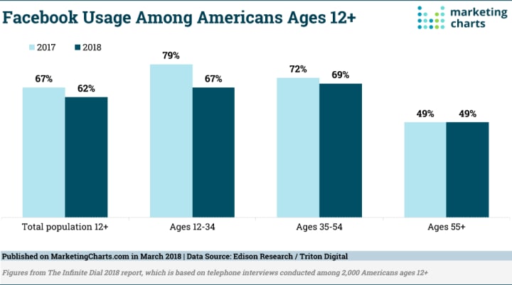 Even before its current spate of troubles, Facebook had been facing challenges with its user base. For a multitude of reasons, the ads, the constant political arguments, and just plain user disillusionment and fatigue, Facebook's audience had actually already been declining in the U.S. and in other countries, and getting older. Some Facebook users sought total respites from social media, while others gravitated to other platforms, such as Snapchat, LinkedIn, and yes, Facebook-owned Instagram.