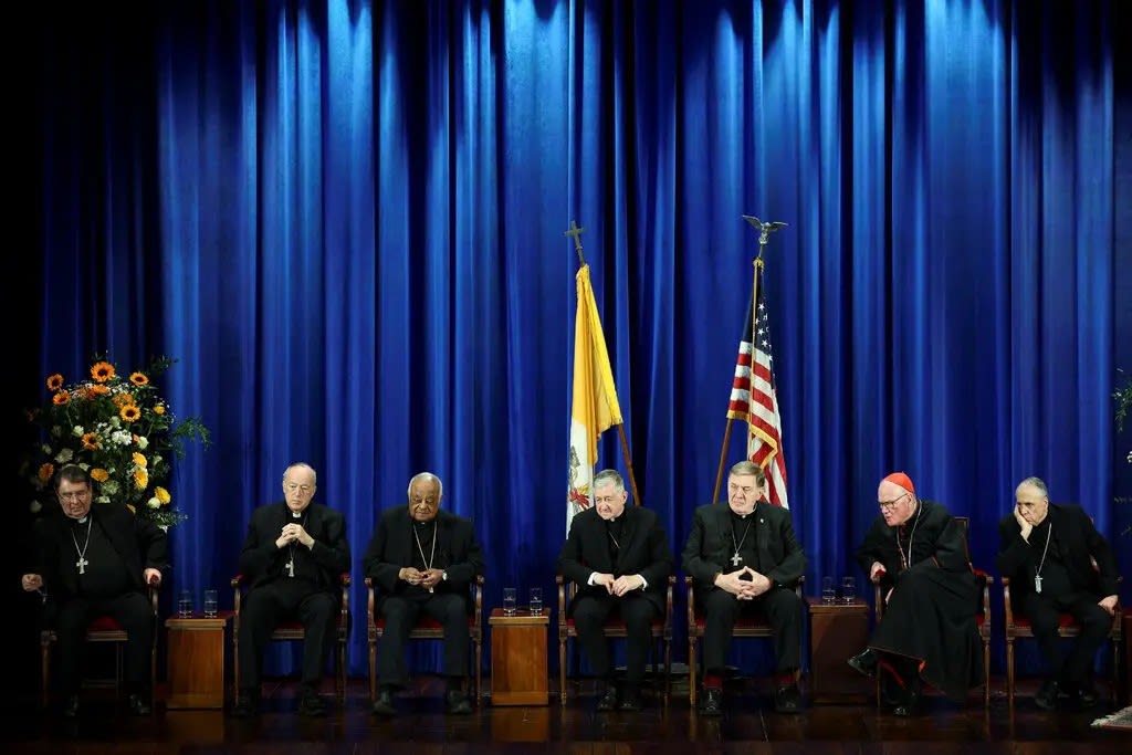 On Friday afternoon, after finally emerging from their Vatican guesthouse — Casa Santa Marta — six American cardinals lined up onstage at the Pontifical North American College to talk to the press. They sat on red velvet chairs, looking tired but kind of proud. A seventh joined them — Cardinal Christophe Pierre, who’s basically the Vatican’s ambassador to the U.S.