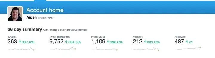 The most pleasing metric for me is the astronomical increase in my tweet impressions which is 863%. I am happy about this stat because it means that more people are seeing my content.