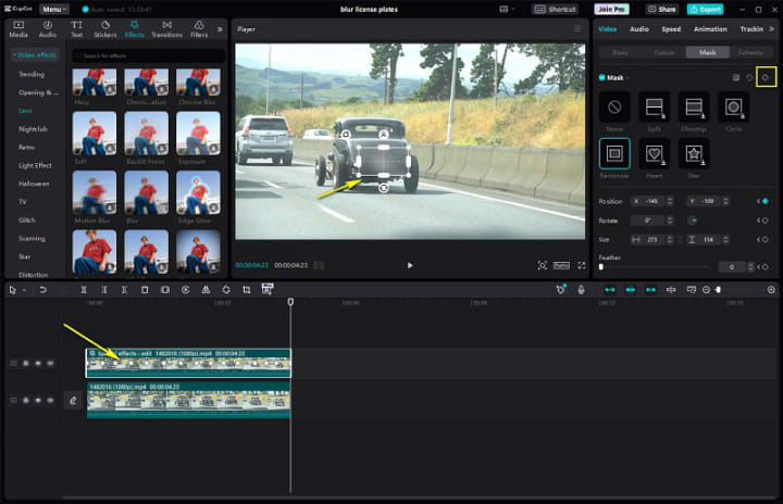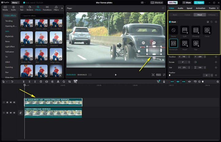 Before comparing the two ways of blurring license plates in videos, let's first make it clear how license plate blurring works in video editors, taking Capcut as an example.