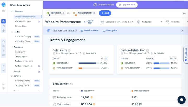 Data analysis from the Duchess of Sussex Meghan's launch of AsEver.com suggest that despite her very high profile and media coverage, her company is not immune to the teething issues of every startup. There was definitely caution on the stock levels which has so far resulted in three sold outs the last one being the launch of the AsEver Napa Valley Rose on the 1st of July 2025. Those stock levels are still in their thousands. The demand which within the last 28 days is close to 400,000 website visits is far outstripping the availability of the product line which is currently sold out. The logical question is then how does Duchess Meghan's AsEver.com compares to similar websites of high profile personalities who have done it before her.