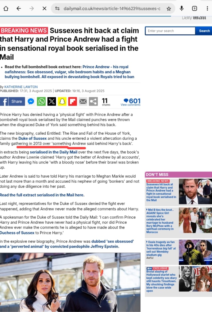 I can make a prediction or call it my precognition if it is not a coincidence that this will roll on tomorrow, the 4th of August 2025, which is the Duchess of Sussex Meghan Markle's birthday. Did I mention that the MailOnline supposedly serialised this book which has this alleged story?