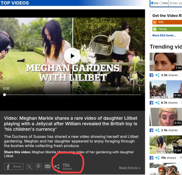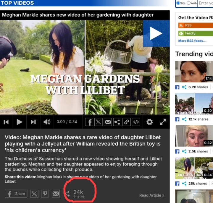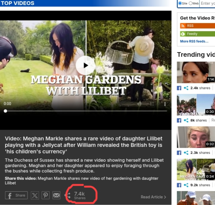 This brings me to that word "clickbait" which happens quiet a lot in that MailOnline. There are also other alleged manipulation of the sharing counters of stories concerning the Duchess of Sussex Meghan Markle written by the MailOnline. Take a look at how the "share counter" circled in red vanishes over time from when the video is first published on the MailOnline.