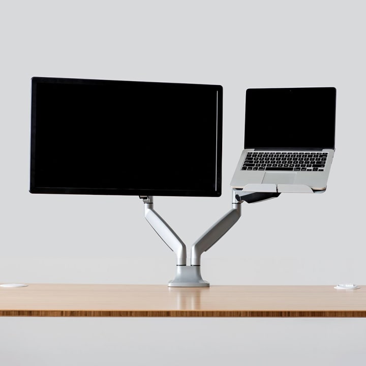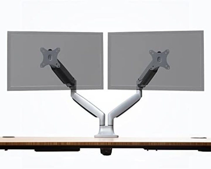 For our best single monitor choice, we suggested the Jarvis Monitor Mounting Arm, and we're staying with it for our best twin monitor option. Their two monitor version has the same excellent, clean look and comes in a variety of colors to match your work environment. Each arm can accommodate monitors up to 32 inches and 19.8 pounds, much as its single monitor predecessor. Both arms can swivel 360 degrees and adjust to a height of up to 19.8 inches. This model also comes with a five-year guarantee.