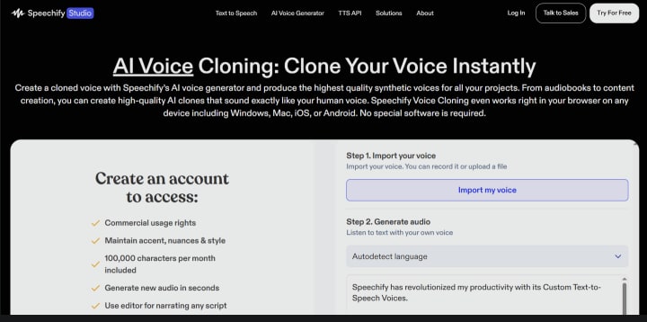 Speechify provides over 200 voices in 60+ languages with broad platform support, including mobile and web apps. The platform emphasizes accessibility and text reading features alongside voice cloning. Users can clone voices by uploading samples and utilize clones within reading and accessibility tools available across devices.
