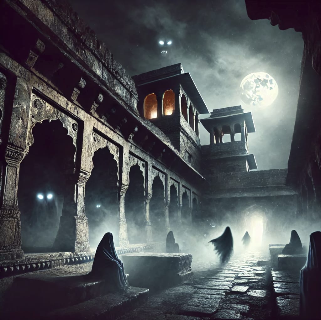 The moon hung low over the ruins of Bhangarh Fort, casting ghostly silver light over its crumbling walls. The air was heavy, thick with an unsettling stillness. Even the wind, which howled through the valleys beyond, seemed to hush itself as it passed over the cursed land.