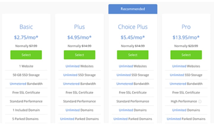Bluehost hosting has introductory pricing as low as $2.75. When you pay this amount, you will receive all of the resources you require for your website at no additional cost. This includes an SSL certificate, unmetered bandwidth, 50 Gigabytes of free SSD storage, and other perks.