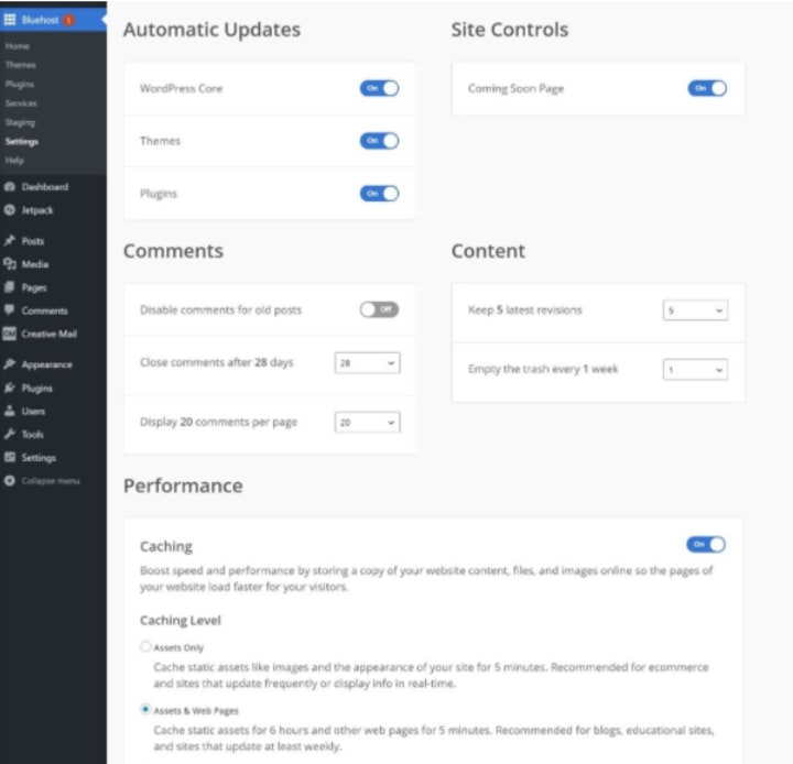 Bluehost has a built-in caching tool to help you optimize your site. If you're unfamiliar with caching, it's one of the most important things you can do to speed up WordPress, so having it built-in by default is very convenient and eliminates the need to use a separate WordPress caching plugin.