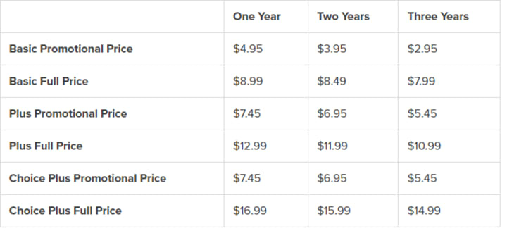 The Choice Plus plan appears to be a no-brainer because it has the same promotional price as the Plus plan but also includes backups. However, keep in mind that the Choice Plus plan's renewal price is higher than the Plus plan's, so the price is only the same for your first billing cycle.