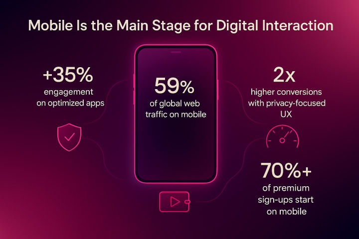 Mobile now shapes how most audiences experience the web — and the adult industry is no exception. According to Statista, nearly 59% of global website traffic in Q2 2024 came from mobile devices, underscoring how smartphones have become the default medium for digital consumption.