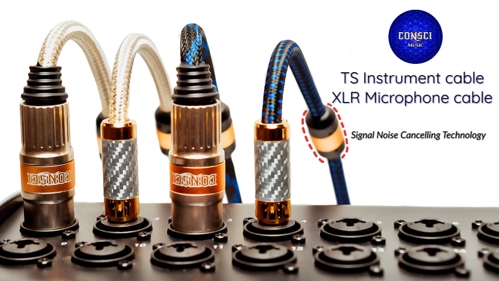 Consci Music Cables, TS Instrument and XLR Microphone Cables, with Noise Cancelling Tech