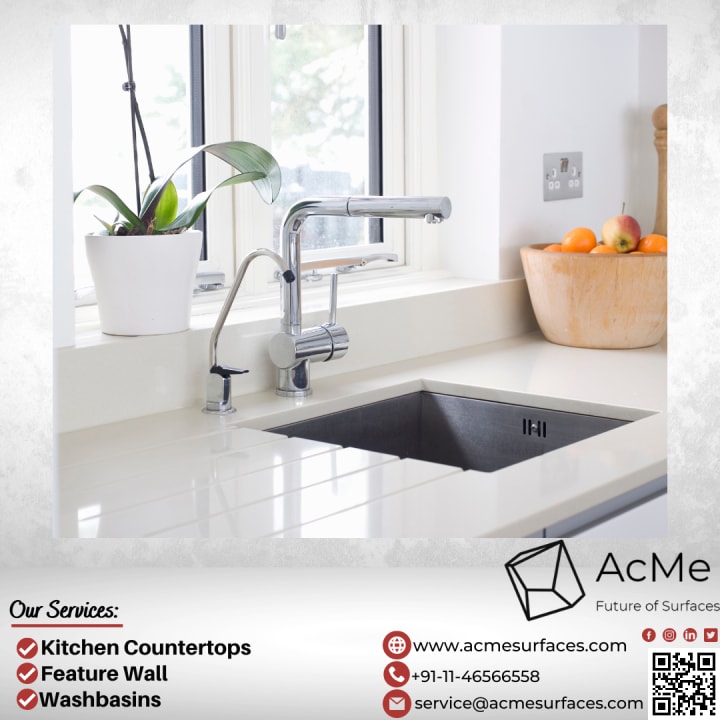 ACME SURFACES Corian® Solid Surface Modular Kitchen Countertops partition panel feature wall tabletop mandir Fabrication India Facade Cladding & Exterior Cladding.