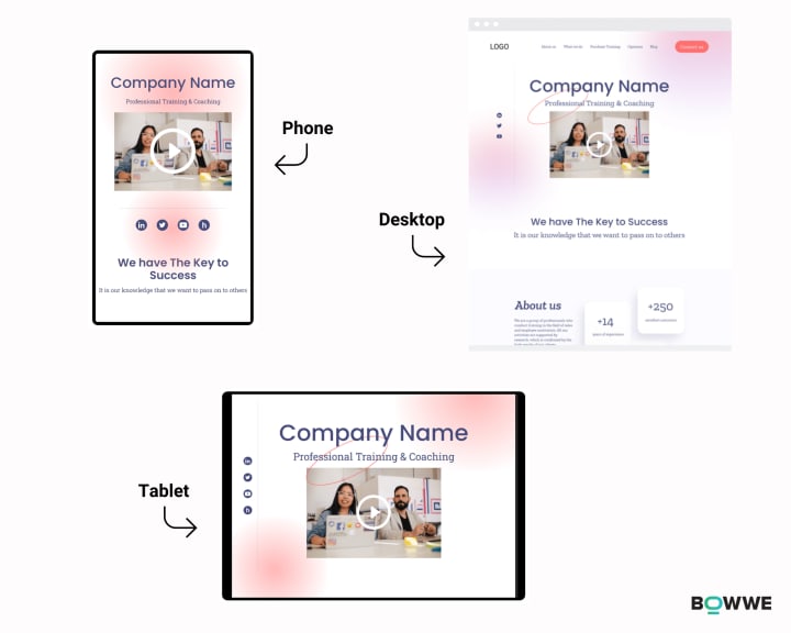 Responsiveness is the adaptation of a website to be displayed on various devices' screens. Nowadays, it is essential because many internet users will be browsing your website from smartphones or tablets. So make sure your website looks nice on desktop and laptop screens and all mobile devices.