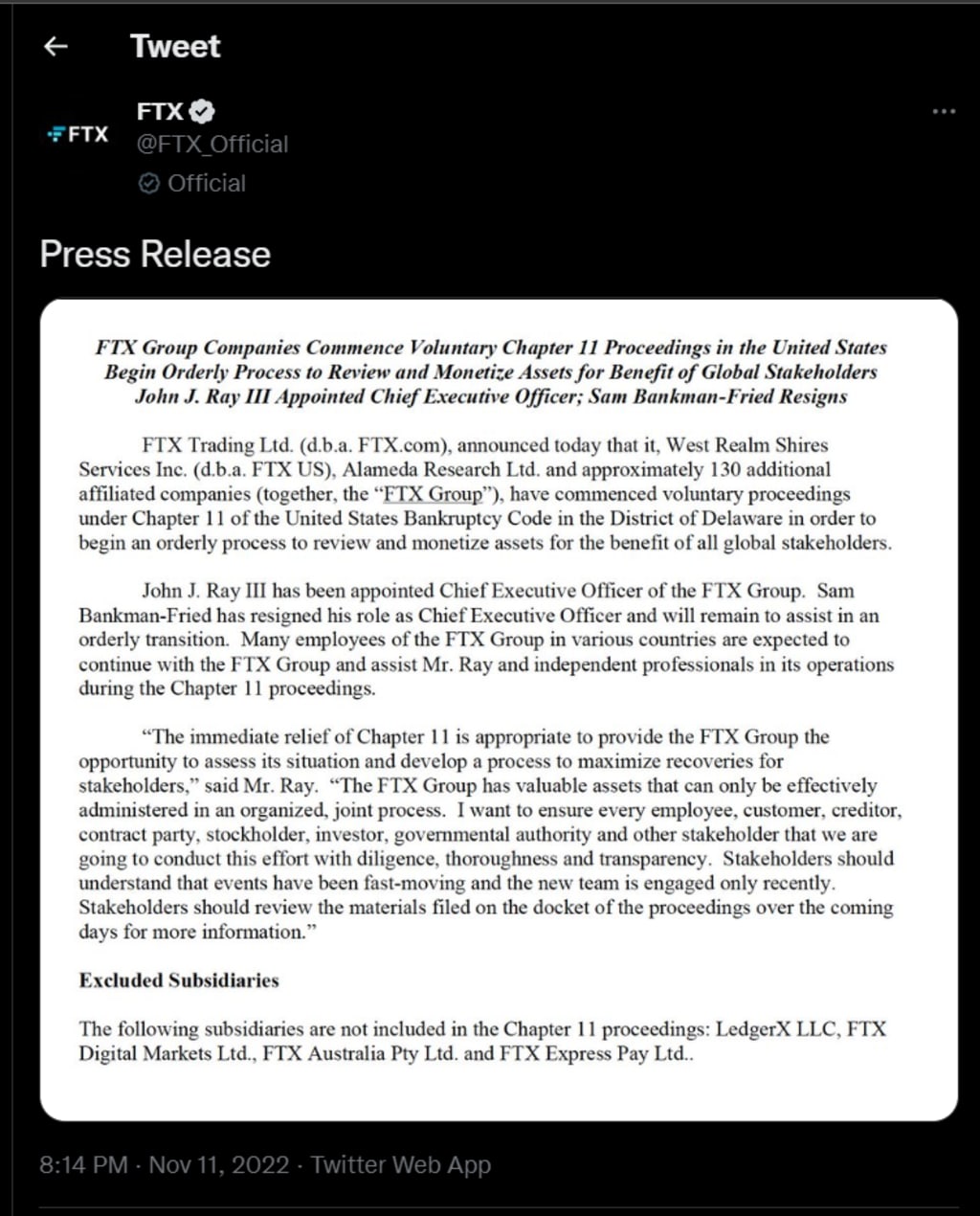 Incapable to find an out, FTX reported its chapter 11 recording Friday morning.