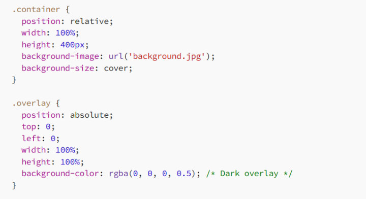 - background-color: rgba(0, 0, 0, 0.5): Adds a semi-transparent black color. You can change the RGBA values to adjust the color and transparency.