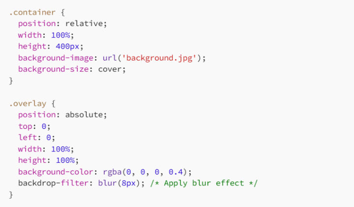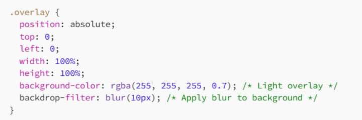 In this example, the .overlay will blur the background image while still allowing the foreground content to remain clear and sharp.