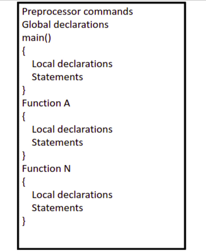 The structure of a C Programming basically has three components namely,