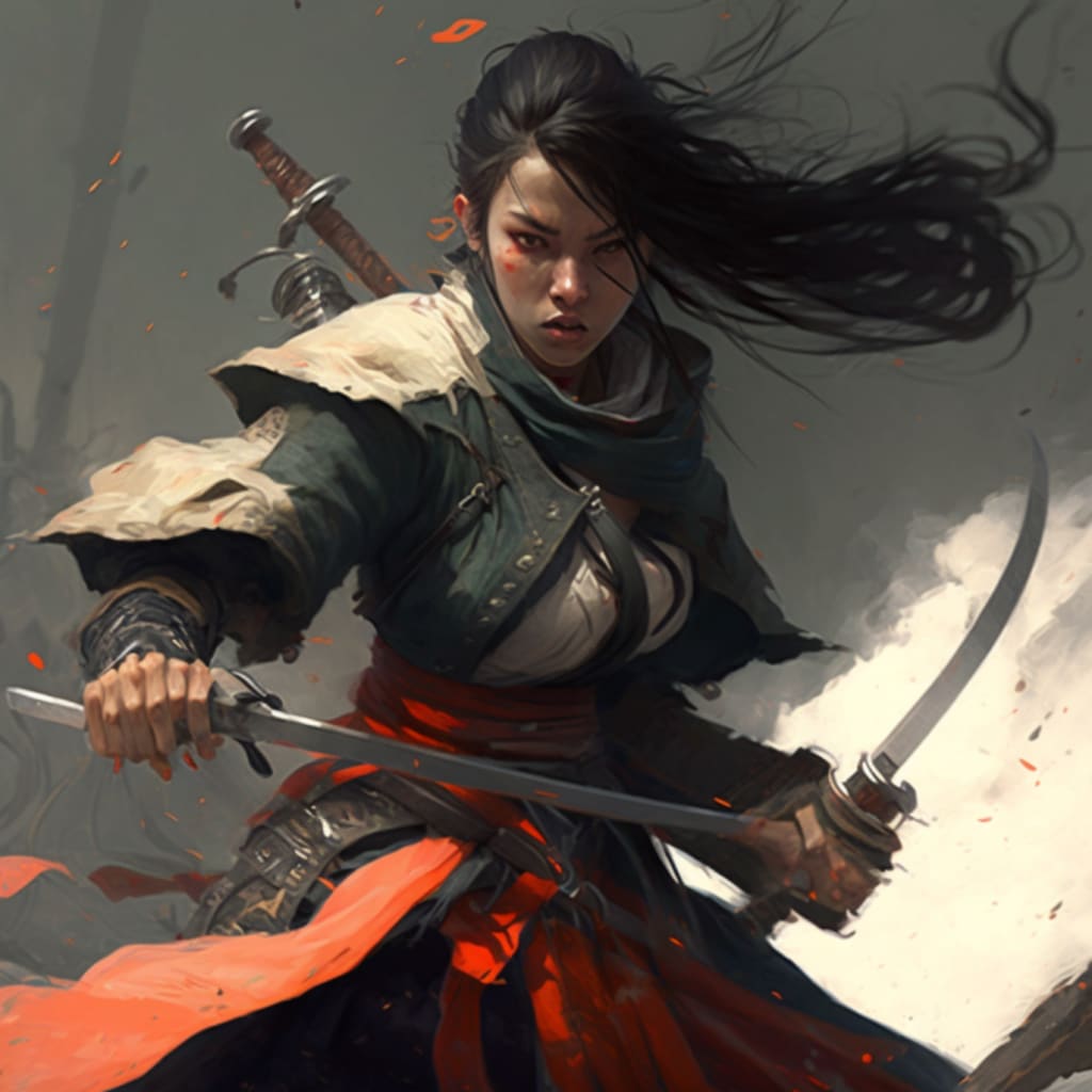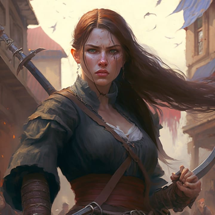 Elise, a young woman, made the decision one day to take issues into her own hands and take action. She was the daughter of the blacksmith in the hamlet, and it was from her father that she had learnt the art of swordsmanship. She had a great sense of responsibility to protect her people, and she made the decision to go up against the robbers on her own.