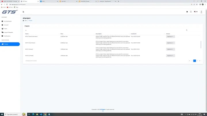 GTS Dash is an online hub for project collaborators seeking to participate in various projects in the text, audio, video, and image categories. Collaborators can sign up and select from a variety of projects, each offering different payments as benefits