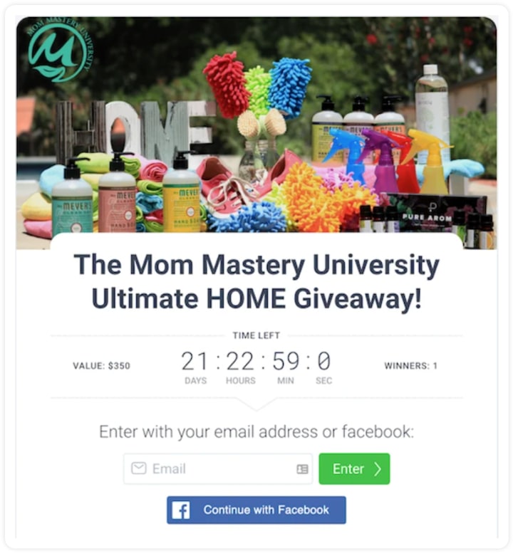 - King Sumo has a built-in countdown timer to create urgency for your giveaway - no coding required here. I find this is a great add-on in reminding people they need to enter. Let's light some FOMO up around here.