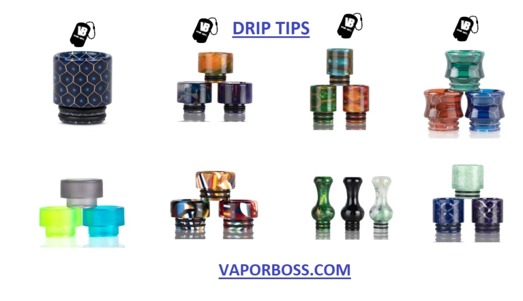 Delrin/Plastic Drip Tips: These are heat-resistant and provide a comfortable, smooth vaping experience.