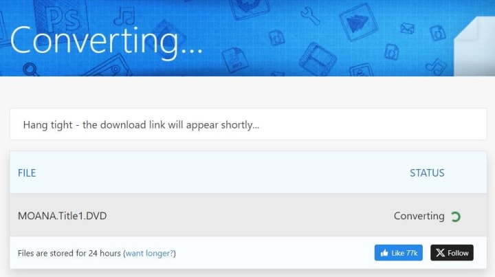 Step 4: It will start to convert AVI to DVD, which will take some time. Wait till all is done, and then download the converted DVD file to your computer.