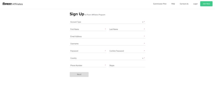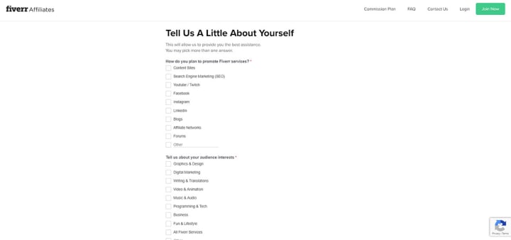 The sign-up process for the Fiverr affiliate programme is one of the simplest one with only two steps involved.