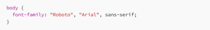 If neither “Roboto” nor “Arial” is available, the browser will choose any available sans-serif font.