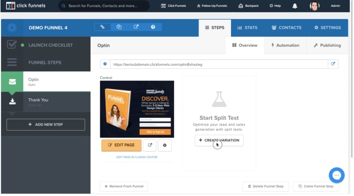 Like GetResponse, ClickFunnels automatically tracks which elements are performing the best and keeps all the data in an A/B testing dashboard. There, you can see data from each test like:
