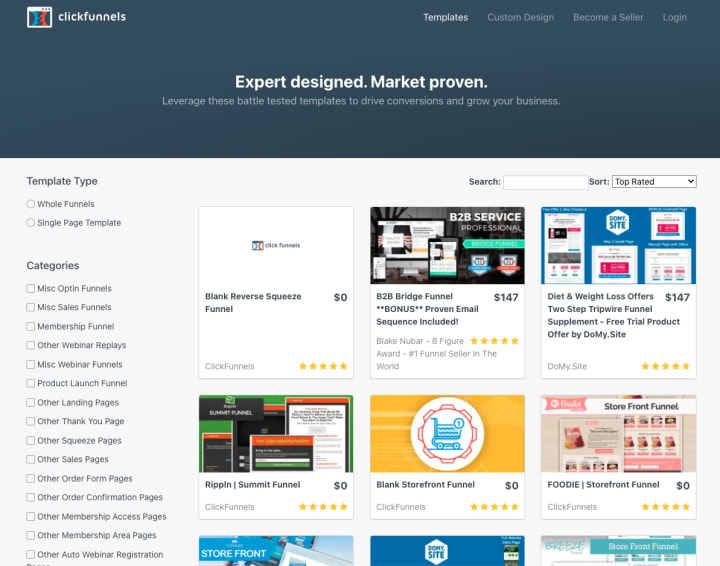 ClickFunnels also has an impressive library of templates that are split into free and premium sections.