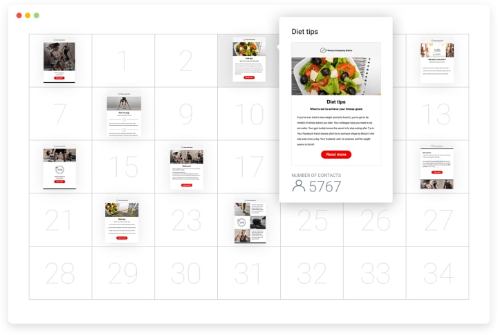 Let’s imagine you want to set up a drip emailing sequence to nurture your new leads. You can do that with ease using our intuitive Autoresponder tool that has this neat calendar view: