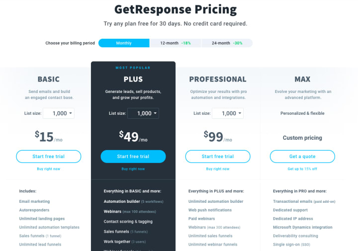 And if you are unsure what plan is the best fit, you can take GetResponse for a test drive with our 30-day free trial.