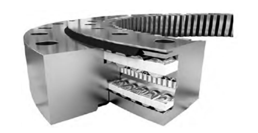 According to the type and arrangement of rolling elements, harbour portal crane slewing bearing bearings can be divided into double-row roller type, single-row cross-roller type, etc. Due to the large load, the harbour portal crane slewing bearing required for crane operation have higher requirements, so generally, three rows of roller slewing bearings are selected for port operations (Figure 1). This is because the inner ring and outer ring of the harbour portal crane slewing bearing of this method are fixed at the bottom of the turntable and the upper part of the cylindrical gantry, respectively. When compared with the axial size, the radial direction of the slewing bearing is much larger, and the impact capacity and dynamic load resistance are significantly stronger so that the safety of the crane can be guaranteed when working.