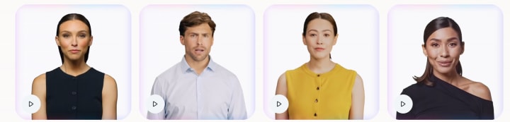 Choose from over 100+ pre-made avatars representing various ethnicities, professions, and expressions. Each avatar is photorealistic and lip-syncs perfectly with the selected voice.