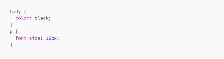 In this case, all text inside the <body> will be black, including the text in paragraphs. The paragraphs will also have a font size of 16 pixels.