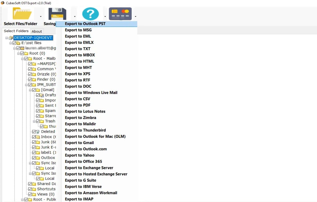 - Support to save OST emails to PST, MBOX, PDF, MSG, EML, EMLX, MHT, HTML, RTF, DOC, etc.