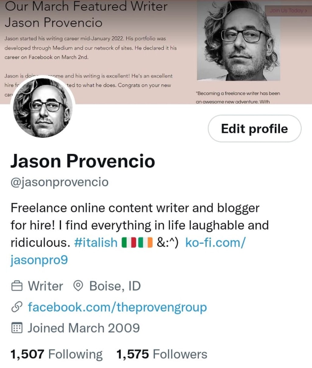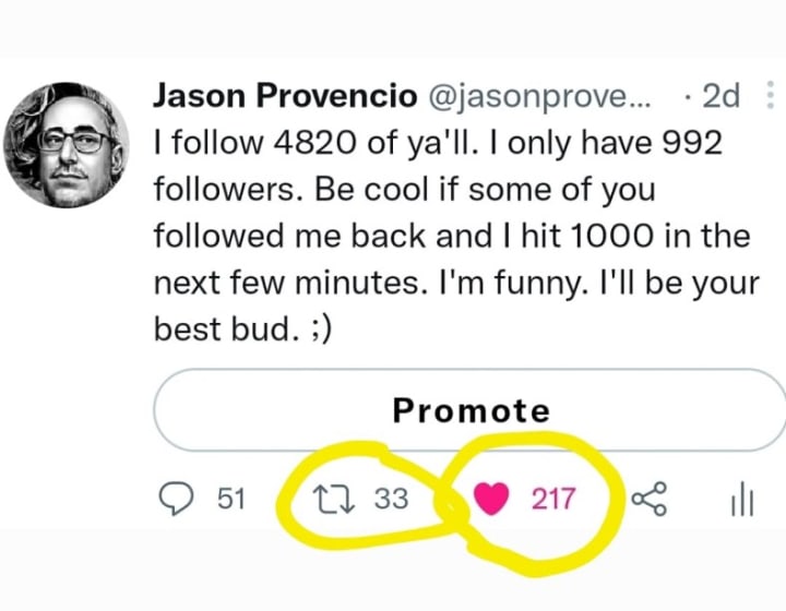 Follow this game plan and you’ll see your social media presence grow. Let’s support each other on Twitter and network with other writers. Here’s my link, please follow me @jasonprovencio and I’ll gladly follow you back. We can retweet each others’ work and help our writer’s community grow. &:^)