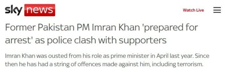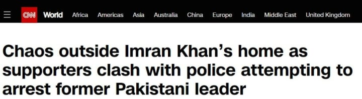 "Clashes between Pakistan Police and Imran Khan's followers as authorities try to arrest him," the Scroll.in headline read.