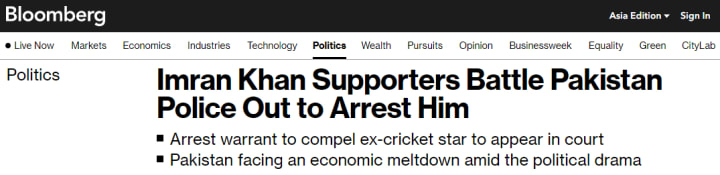"Imran Khan fans battle Pakistan police out to arrest him," read the headline on Bloomberg.