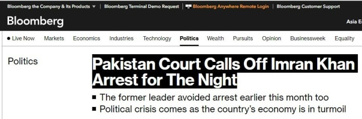 Then, the phrase "Pakistan court calls off Imran Khan arrest for the night" appeared in a headline discussing Wednesday's judicial events.