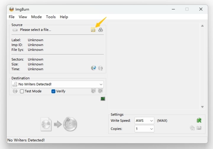 If you want more control on Windows, ImgBurn is a lightweight option. It writes from BIN, IMG, or ISO and supports BD-R and BD-RE including dual layer. ImgBurn also has customization options for the burning process, like creating bootable Blu-ray discs, adjusting burning speed, and verifying disk after burn. These options give you a tailored and stable Blu-ray burning experience for both standard and advanced needs.