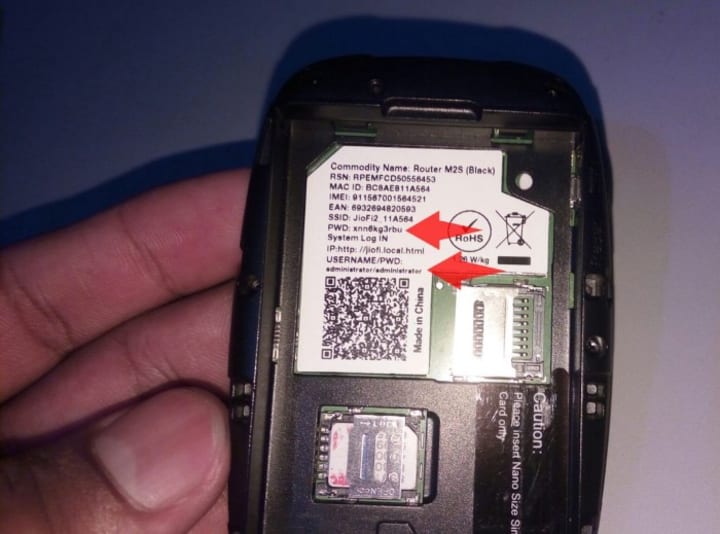 You can see JioFi default Password and username after removing the battery.