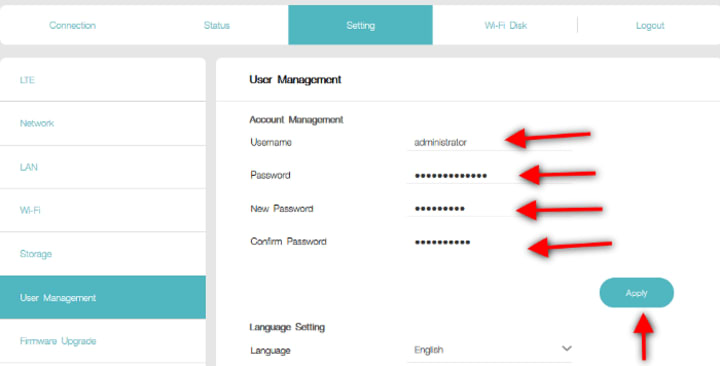 To do that you have to Log In at http://jiofi.local.html and then Click on Setting after that, click on User Management.